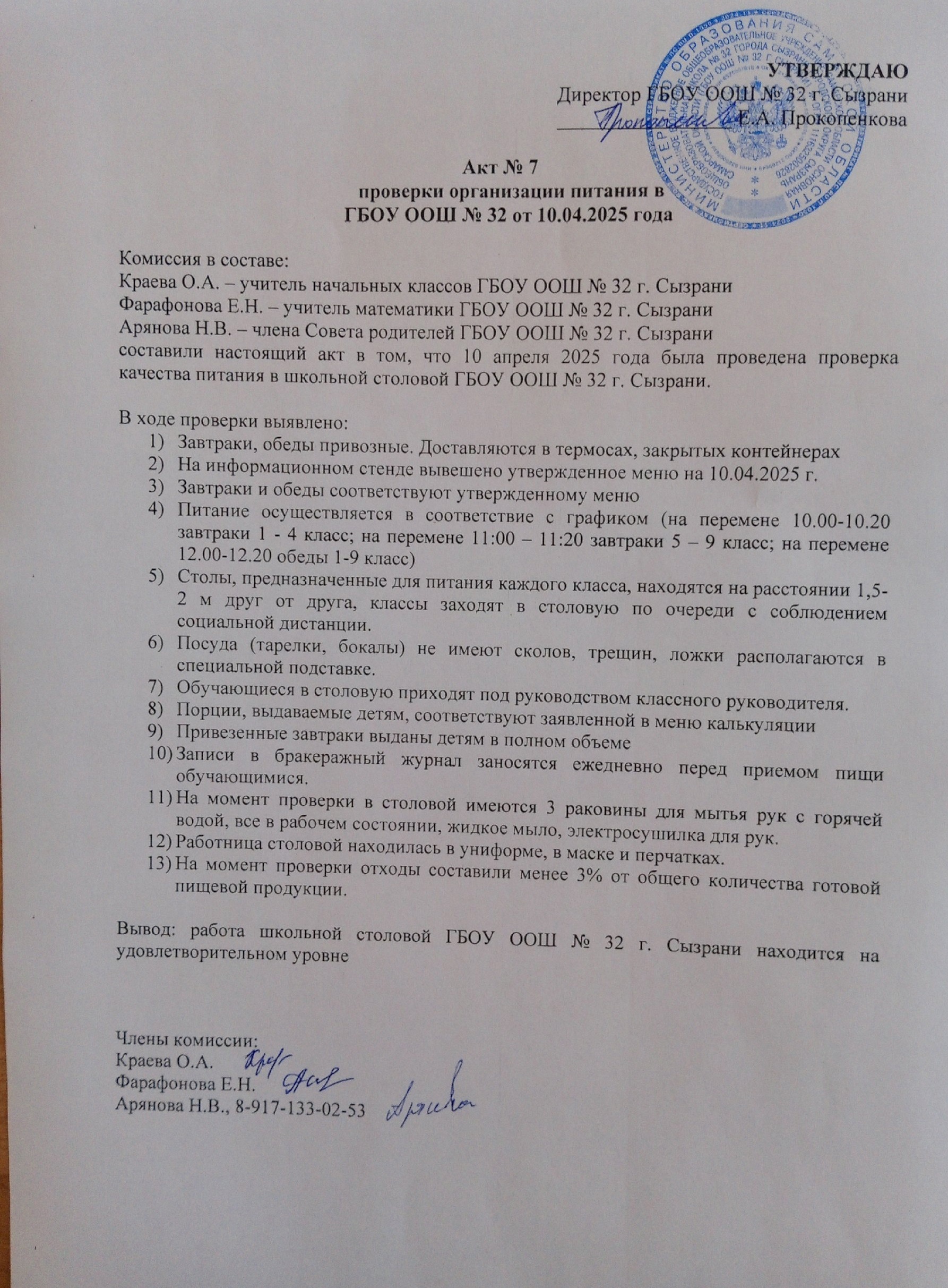 Руководитель ГБОУ ООШ №32 г.Сызрани: Прокопенкова Екатерина Андреевна