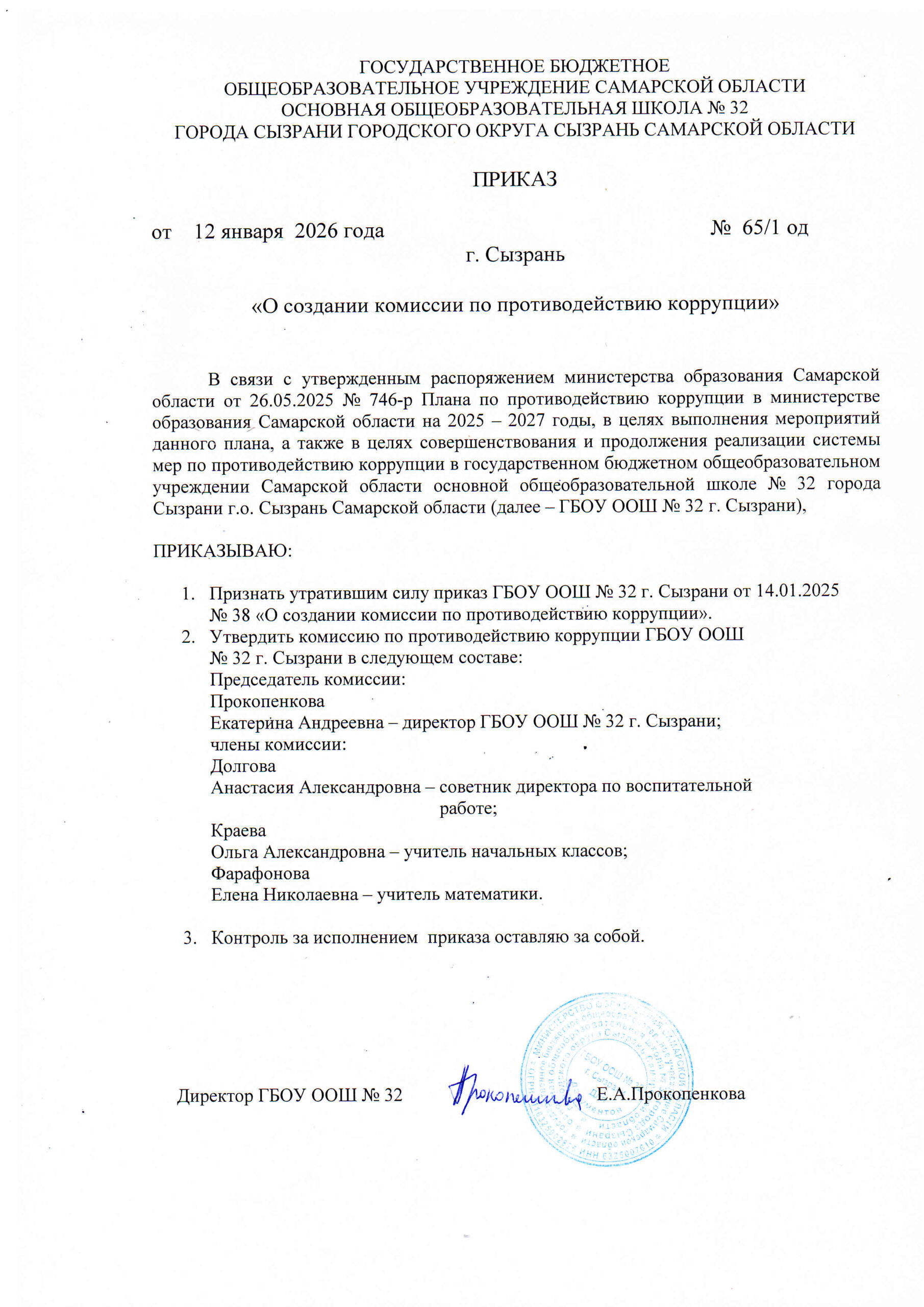Положение о комиссии по противодействию коррупции в ГБОУ ООШ №32 г.Сызрани